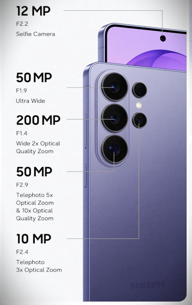 Galaxy S26 Ultra का कैमरा इसका सबसे बड़ा हाईलाइट है जिसको क्वॉड रियर कैमरा सेटअप पर लांच किया गया है फ़ोन के बैक पैनल में 200 मेगापिक्सेल का OIS प्राइमरी कैमरा सेंसर दिया गया है जिसमे कम रोशनी के साथ अधिक डिटेल फोटो और वीडियो रिकॉर्ड कर सकते है